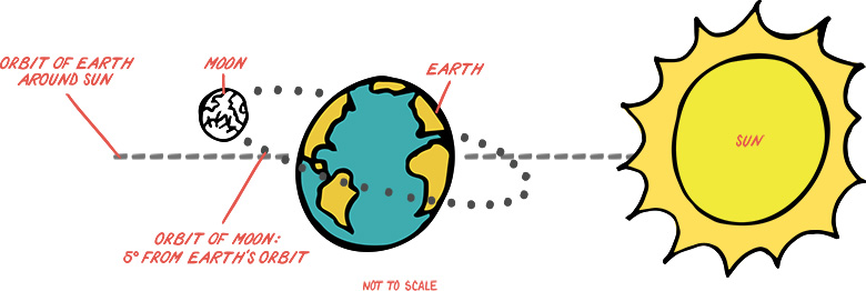 The moon’s orbit is tilted 5 degrees from the earth’s orbit (around the sun), so the moon is usually too high or too low to cause a solar eclipse.
