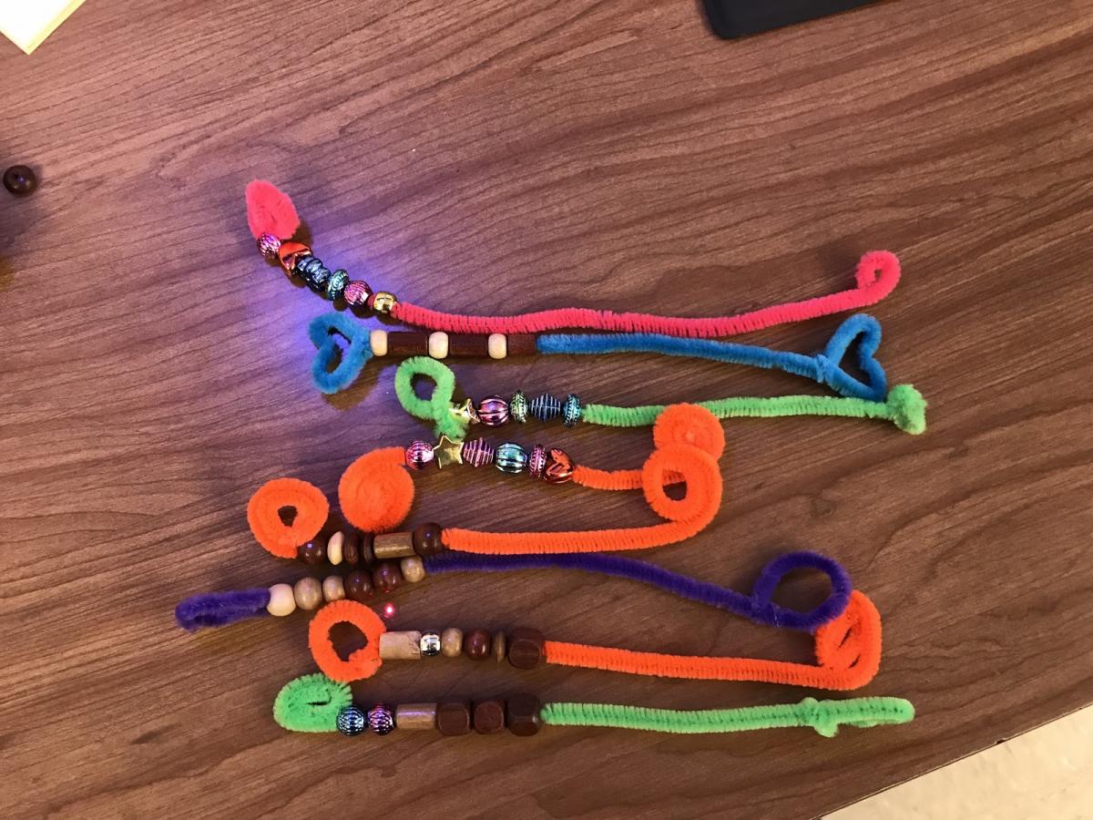 When you notice your mind wandering, which is normal (the mind's job is to think), acknowledge it with kindness, maybe say “thinking” to yourself, and then bring your attention back to the beads, your anchor. Every time we place attention on something and then notice we have lost that attention but then redirect our attention, we are strengthening the part of the brain that is in charge of focus and concentration. It is as though we are doing a bicep curl for the brain. Notice how you feel. Think about when you can practice your attention skills.