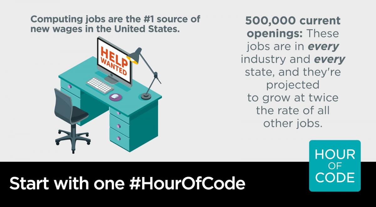 Why computer science? Computing is the No.1 source of new wages in the U.S., and more than 500,000 computing jobs are open nationwide. Graduates in computer science enjoy the second-highest starting salary and the highest full-time employment rate (76 percent) within six months of graduation. Every 21st-century student should have the opportunity to learn how to create technology. But most schools don’t teach computer science.