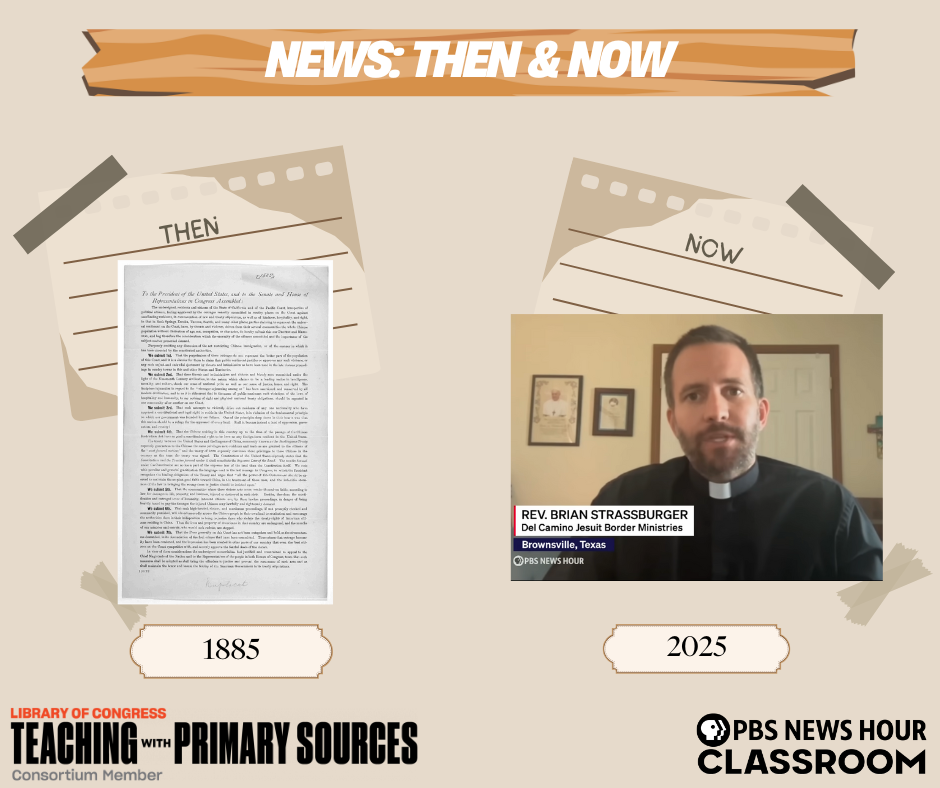 Using this News: Then & Now activity, based on News Hour's Journalism in Action website, a project supported by the Library of Congress, students are asked to compare news events from the past to today.