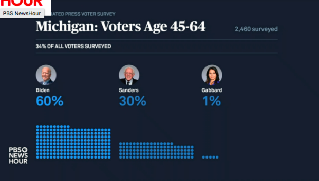 Former Vice President Joe Biden won important primary victories Tuesday in Michigan, Idaho, Mississippi and Missouri. Vermont Sen. Bernie Sanders won North Dakota. Washington State has still not been called, but as of Wednesday morning, the race was tight. Biden has showed success building a coalition of African Americans, rural white voters and suburbanites who previously had backed Sanders. Near his Philadelphia campaign headquarters, Biden said Tuesday’s vote was “another good night” and “a step closer to restoring decency, dignity and honor to the White House.” Biden now leads the delegate count at 843 to Sanders’s 681. The two candidates debate this Sunday in Phoenix. Watch the video and answer the questions. You can turn on the “CC” (closed-captions) function. If short on time, watch the first 5 minutes to hear about the Michigan primary.